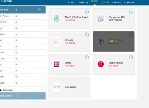 - Bước 2: Lựa chọn phương thức nạp tiền thuận tiện nhất cho bạn như qua ngân hàng, ví điện tử, hoặc các hình thức hỗ trợ khác.
